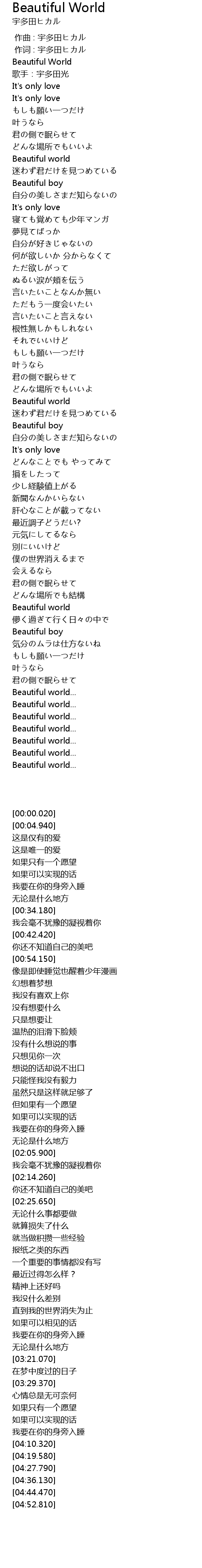 | [00:00.020] | Beautiful World |