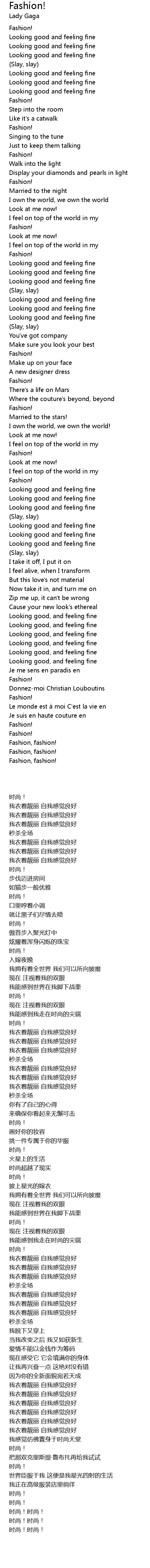| [01:32.010] | Looking good and feeling fine |