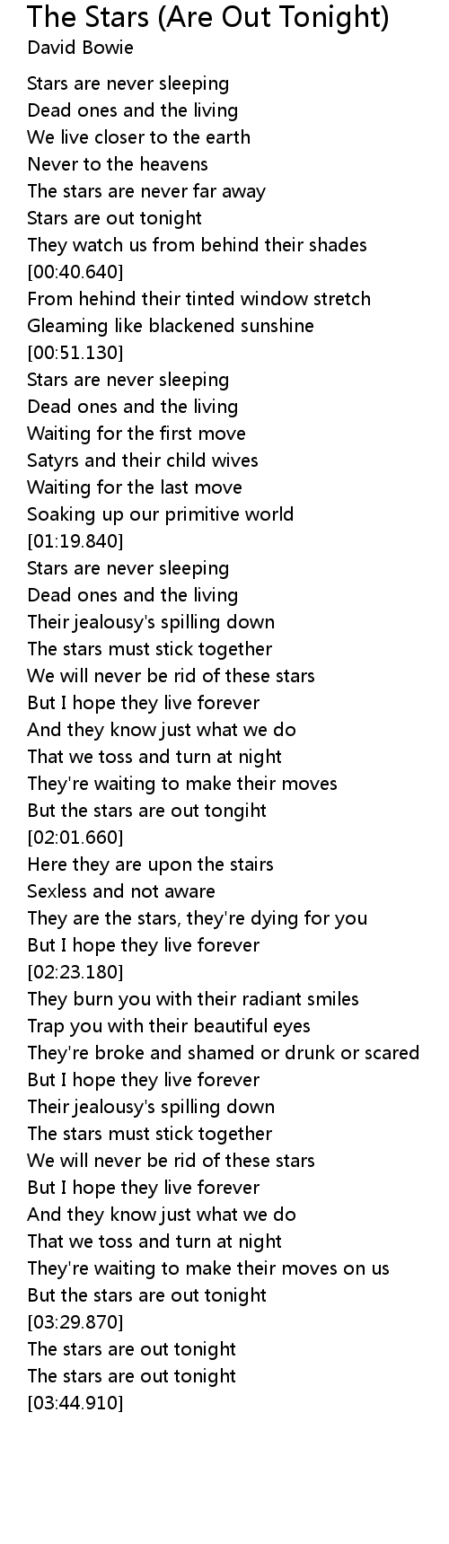 But the stars are out tonight |