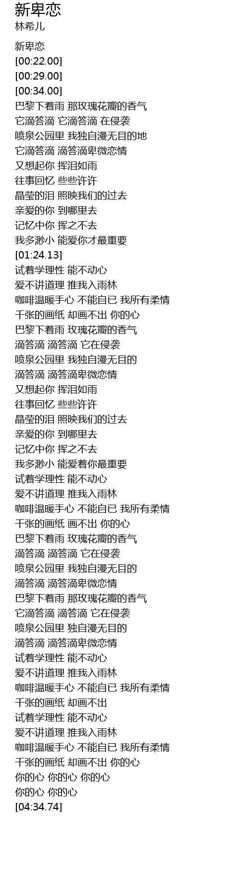 | [04:19.51] | nǐ de xīn nǐ de xīn nǐ de xīn |