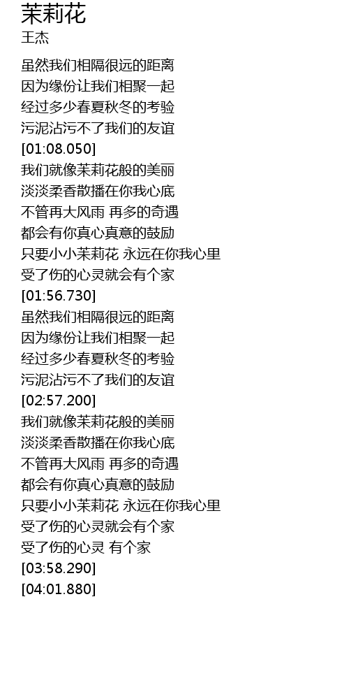 | [01:41.810] | 只要小小苿莉花 永远在你我心里 |