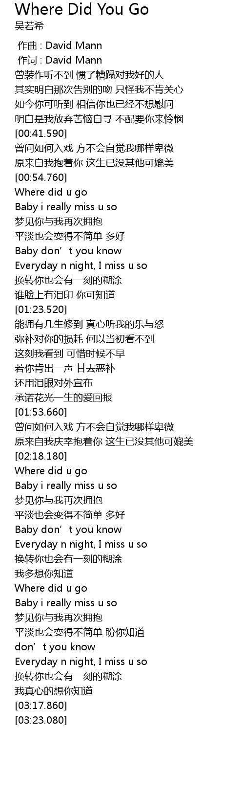 | [02:19.950] | Where did u go |