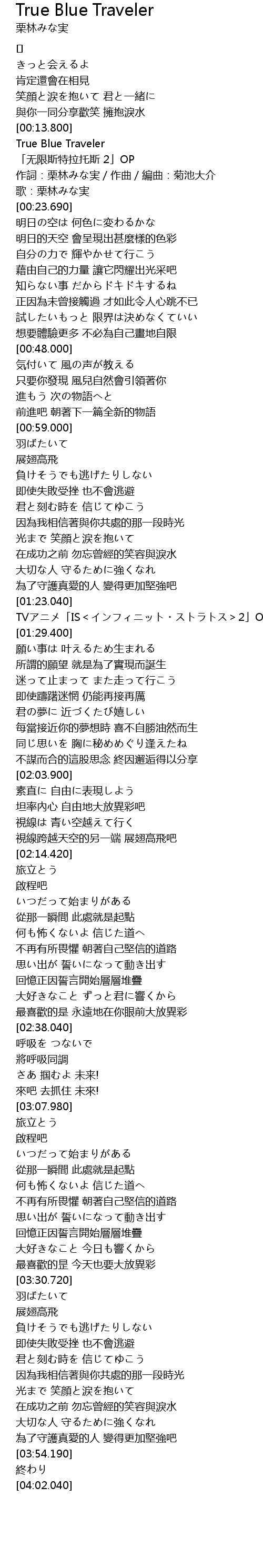 | [00:17.690] | wú xiàn sī tè lā tuō sī 2 OP |