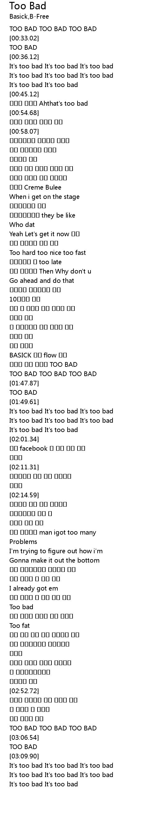 | [02:59.70] | TOO BAD TOO BAD TOO BAD |