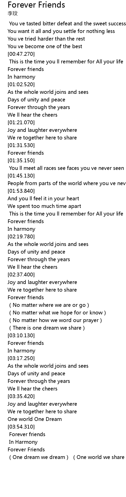 | [04:17.440] | (One dream we dream) (One world we share) |