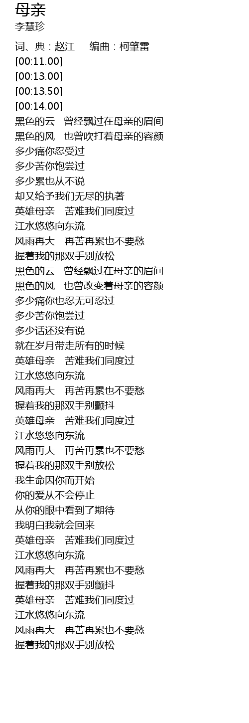 | [00:59.53] | 英雄母亲 苦难我们同度过 |
