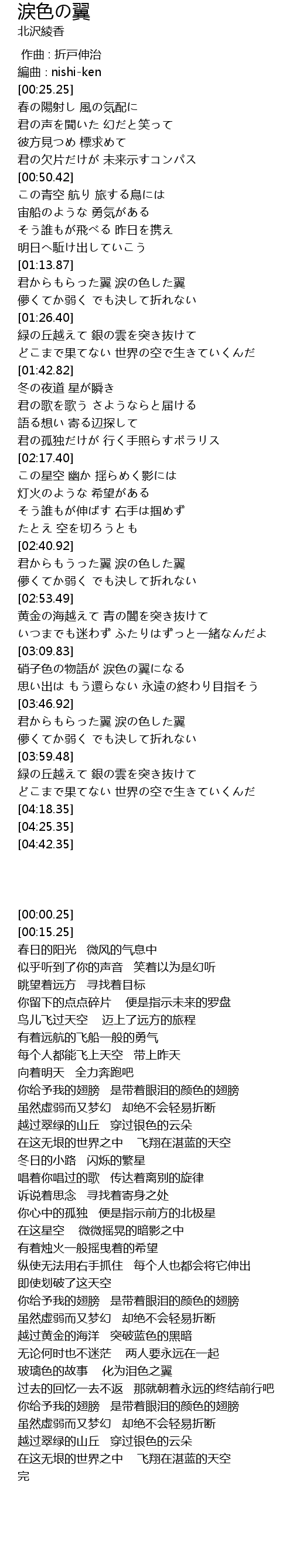 | [02:41.57] | 君からもうった翼 涙の色した翼 |