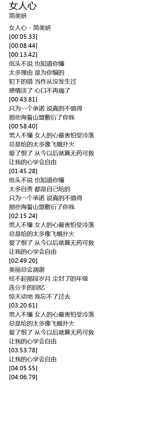 | [00:02.37] | 女人心 - 简美妍 |