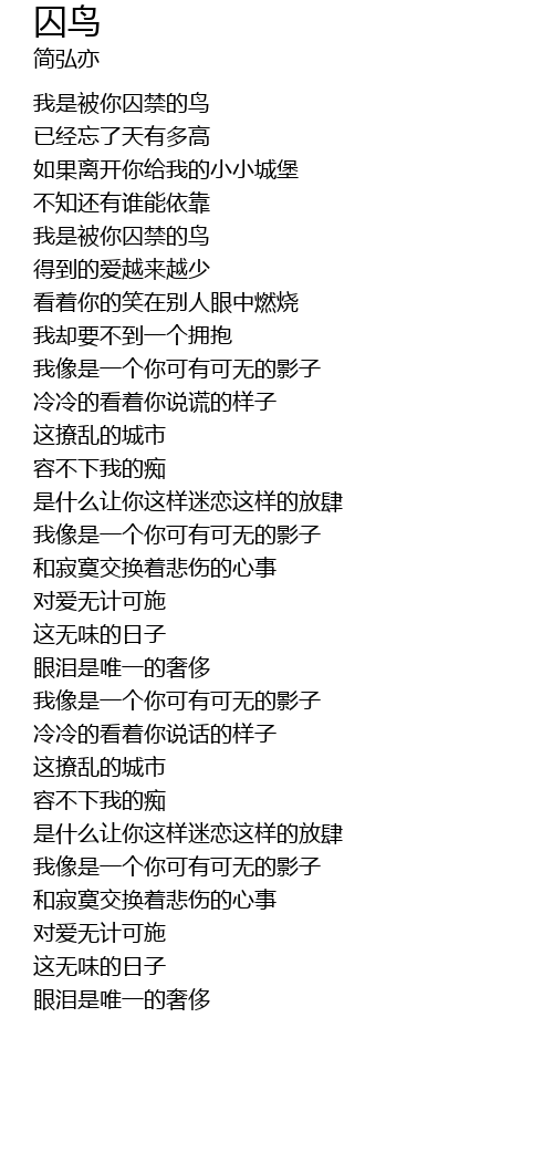 | [01:02.110] | 我是被你囚禁的鸟 |
