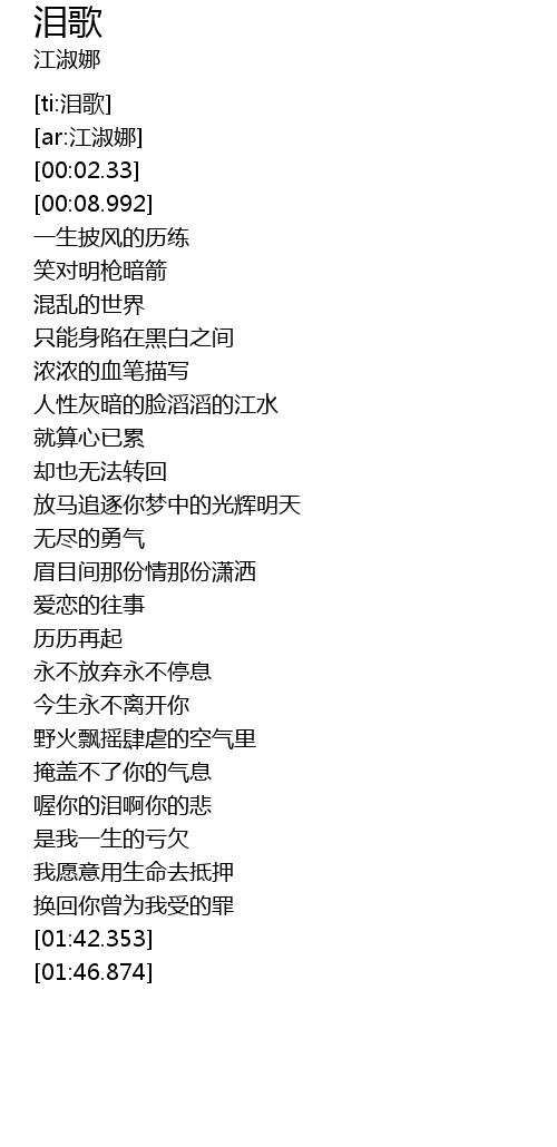 | [01:22.937] | 喔你的泪啊你的悲 |