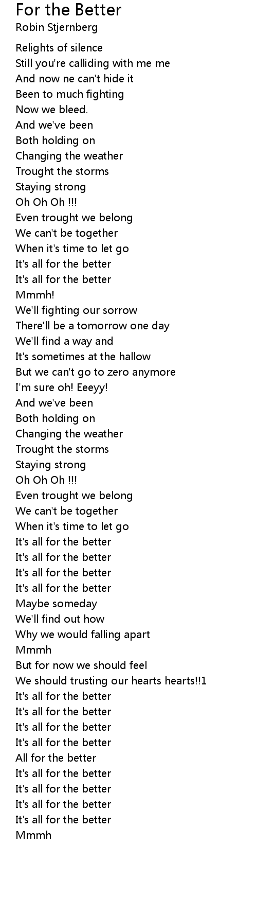 All for the better |