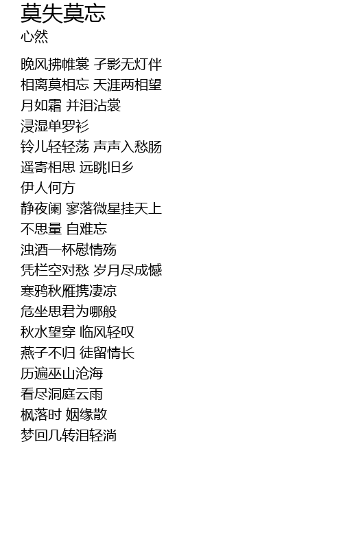 | [00:14.710] | 相离莫相忘 天涯两相望 |