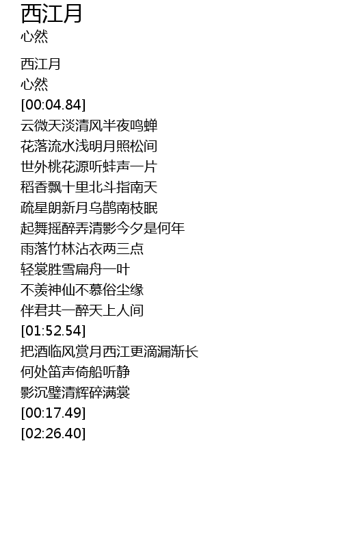 | [00:01.57] | 西江月 |