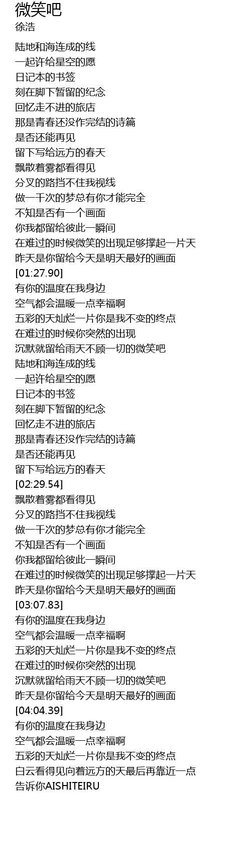 | [01:33.39] | kōng qì dōu huì wēn nuǎn yì diǎn xìng fú a |