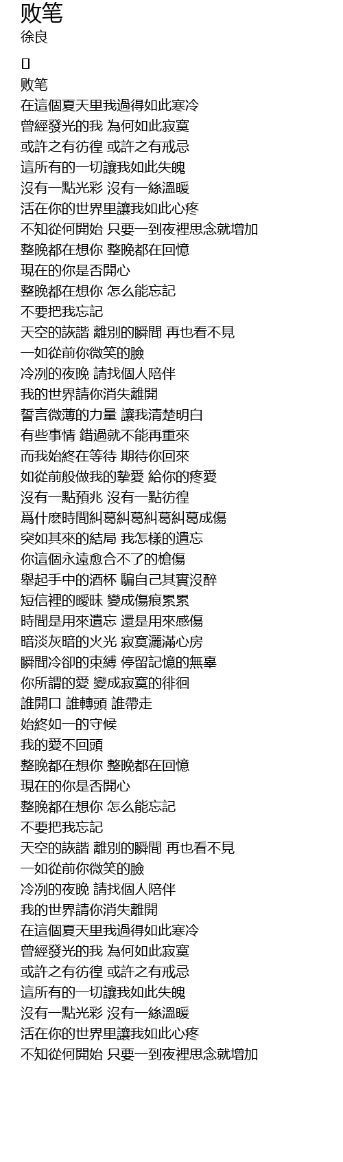 | [01:33.277] | 突如其來的結局 我怎樣的遺忘 |