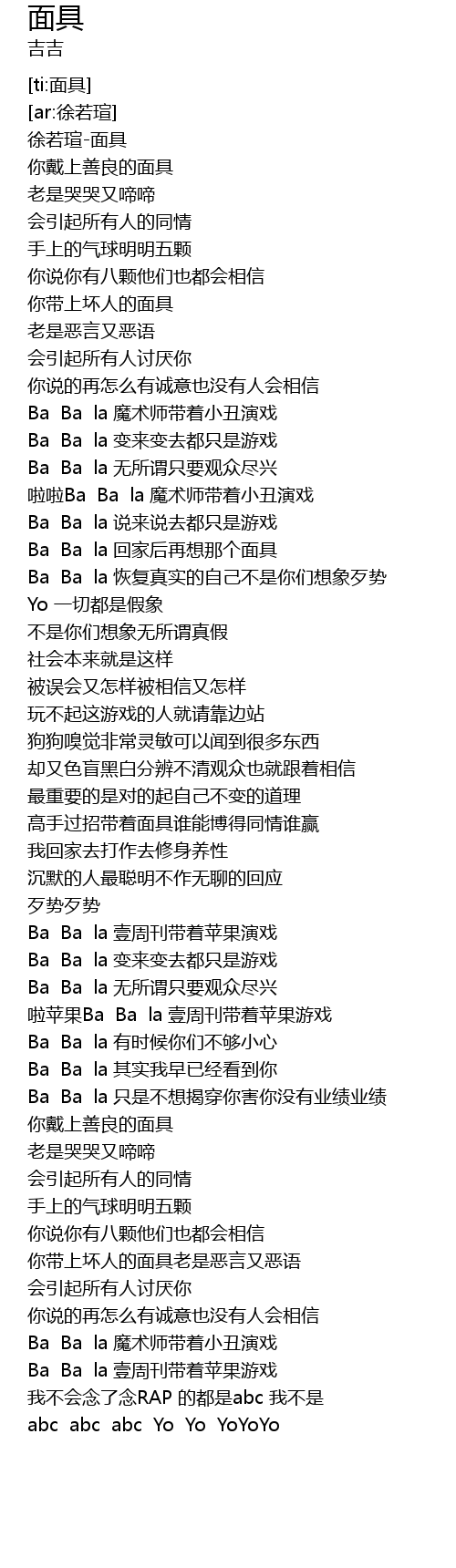 | [01:25.768] | Ba Ba la 回家后再想那个面具 |