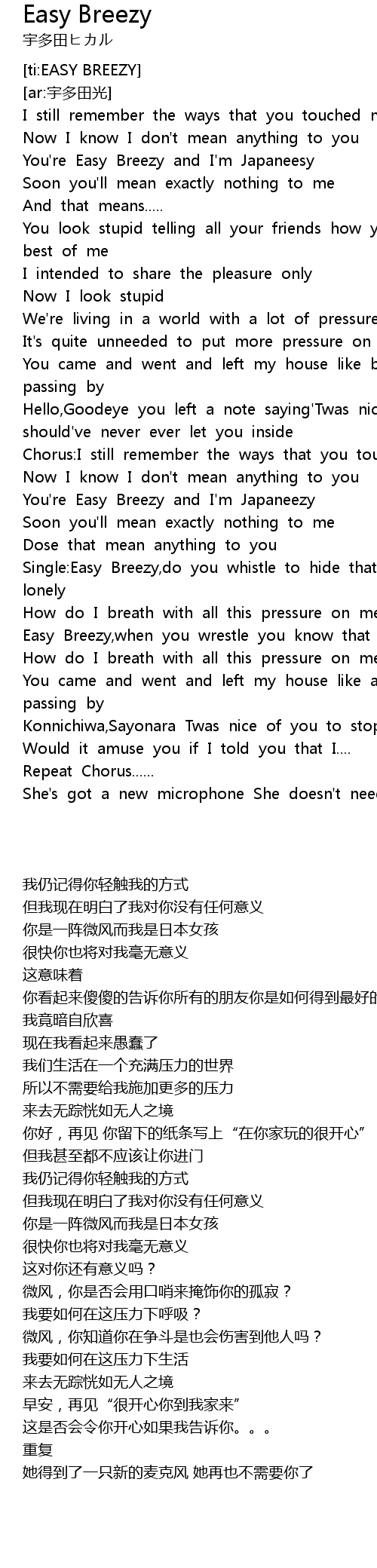 | [00:15.20] | You're Easy Breezy and I'm Japaneesy |