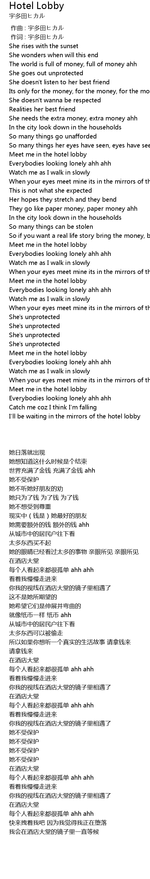 | [00:01.00] | 作词 : 宇多田ヒカル |