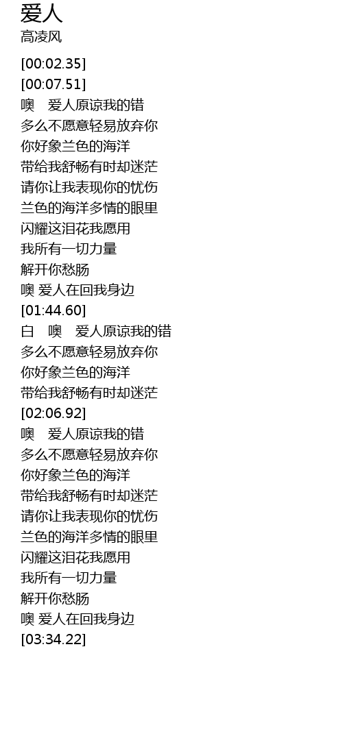 | [01:35.27] | 噢 爱人在回我身边 |