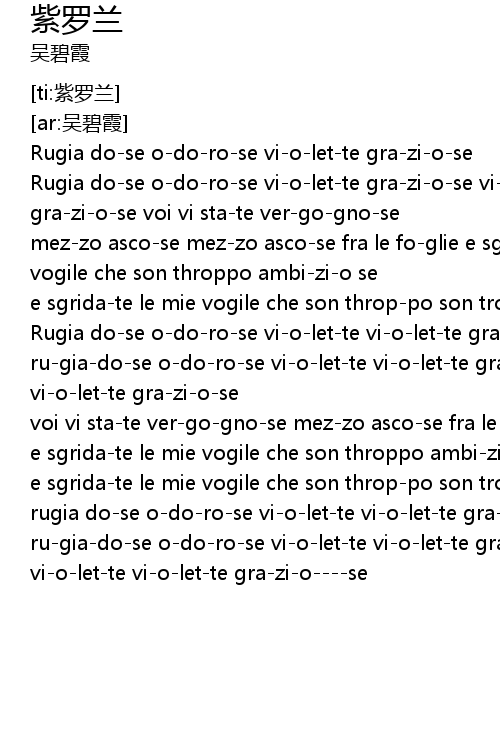 | [00:19.569] | Rugia do-se o-do-ro-se vi-o-let-te gra-zi-o-se vi-o-let-te gra-zi-o-se voi vi sta-te ver-go-gno-se |
