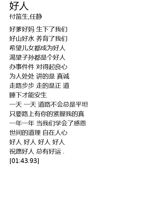 | [01:31.76] | hǎo rén hǎo rén hǎo rén hǎo rén |