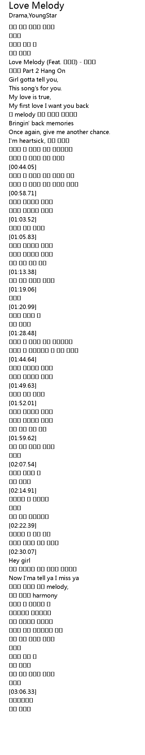 | [00:14.04] | Love Melody (Feat. 한유일) - 드라마 |