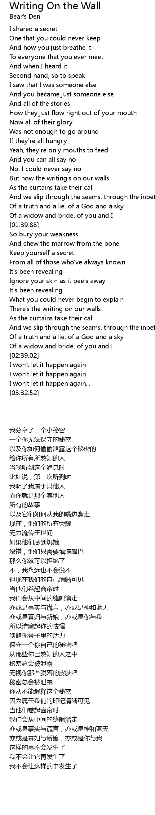 There's the writing on our walls |