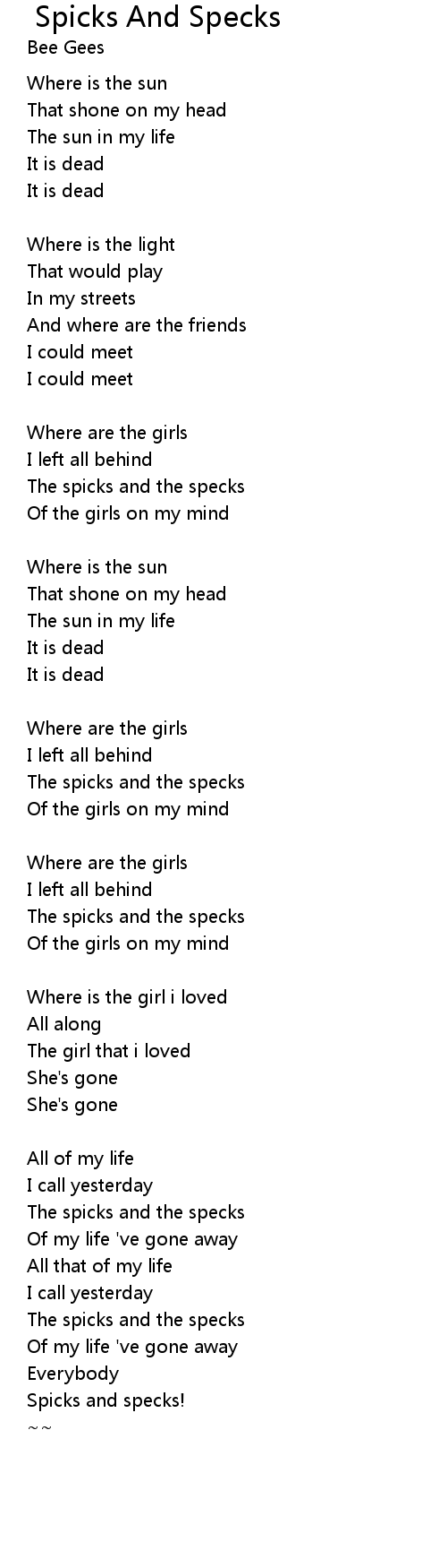 Spicks and specks! |