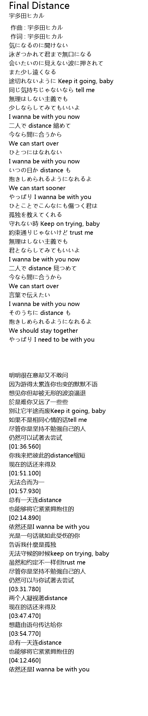 | [00:00.573] | 作词 : 宇多田ヒカル |