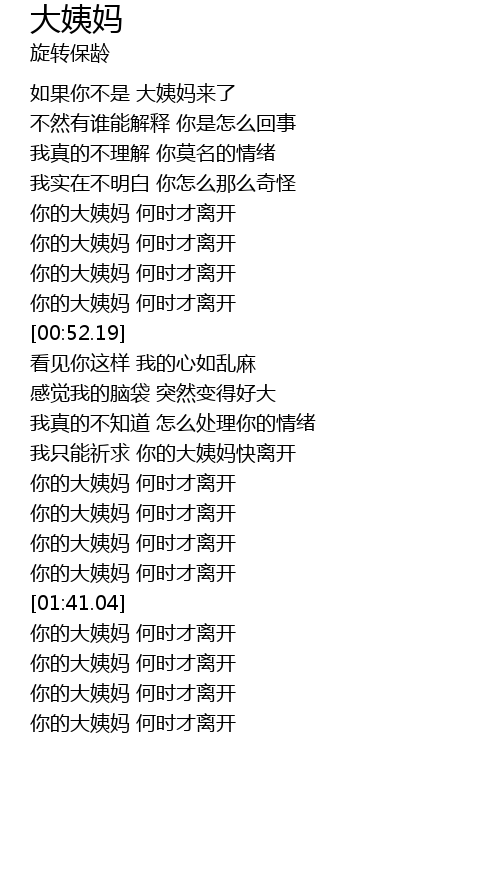 | [00:41.90] | 你的大姨妈 何时才离开 |