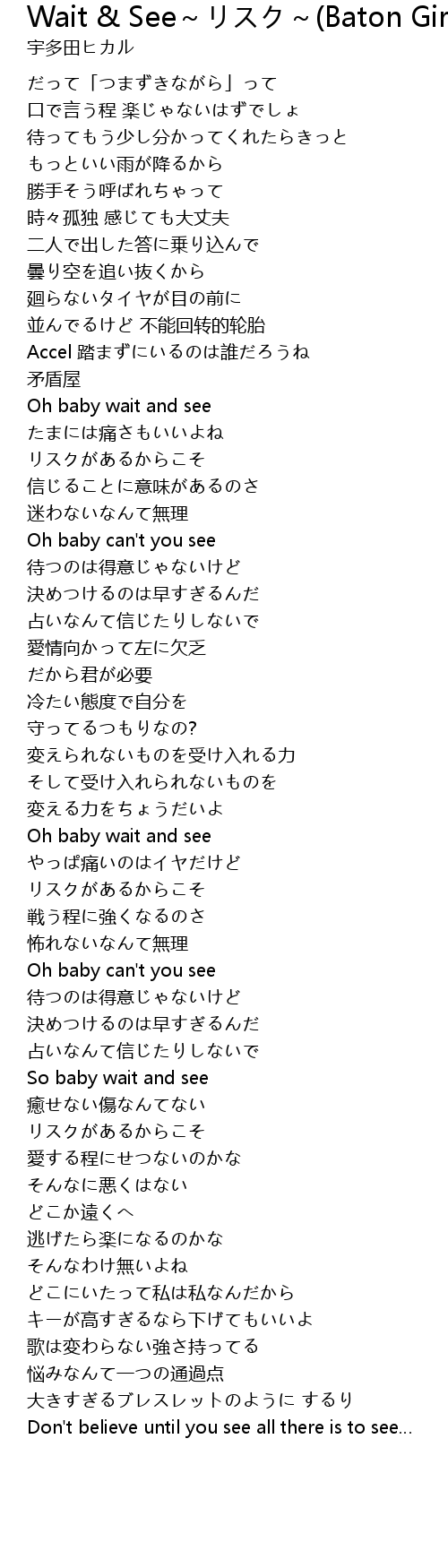 | Song | Wait & See~リスク~(Baton Girl Mix/バトンガール Mix) |