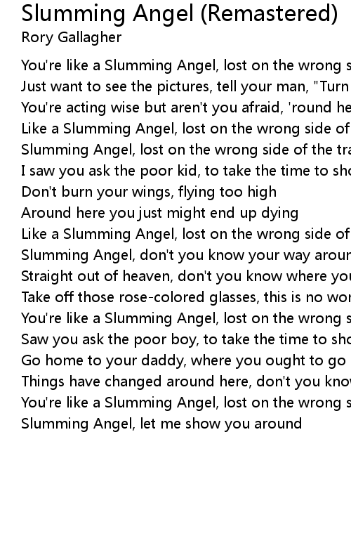 You're like a Slumming Angel, lost on the wrong side of the tracks |