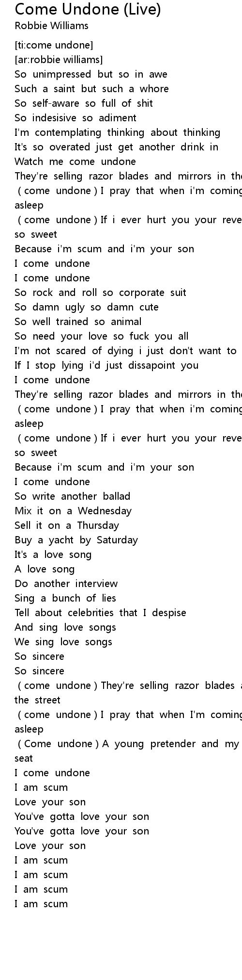 | [02:04.249] | come undone If i ever hurt you your revenge would be so sweet |