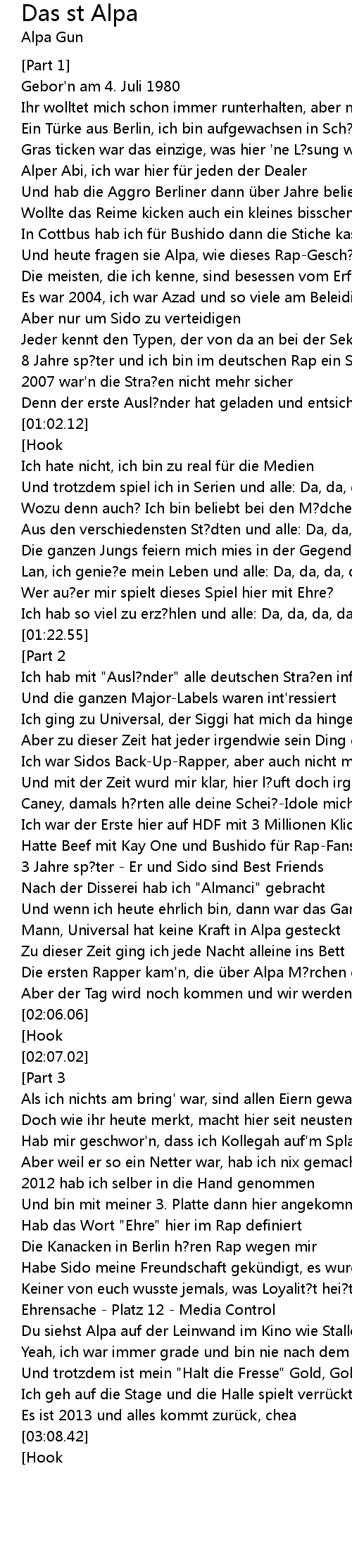 | [02:43.69] | Hab das Wort "Ehre" hier im Rap definiert |