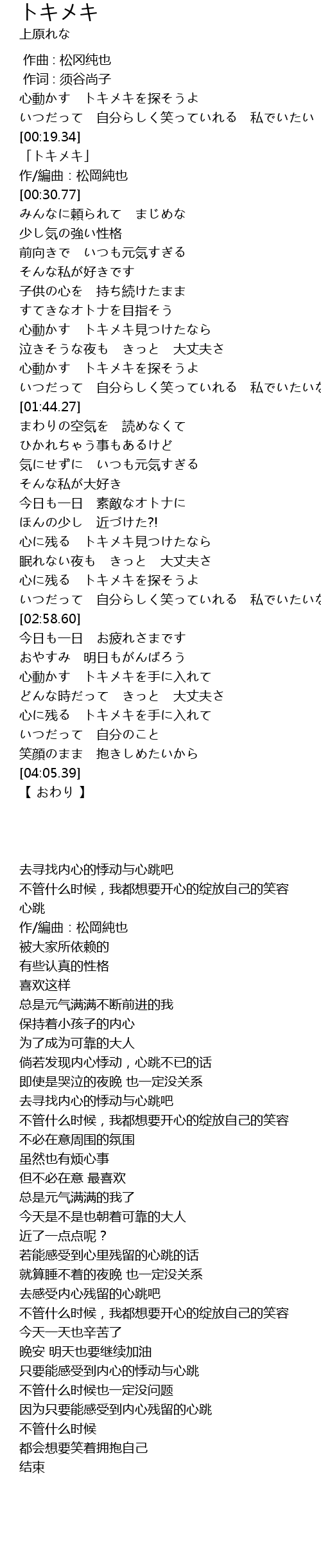 | [00:21.77] | 「トキメキ」 |