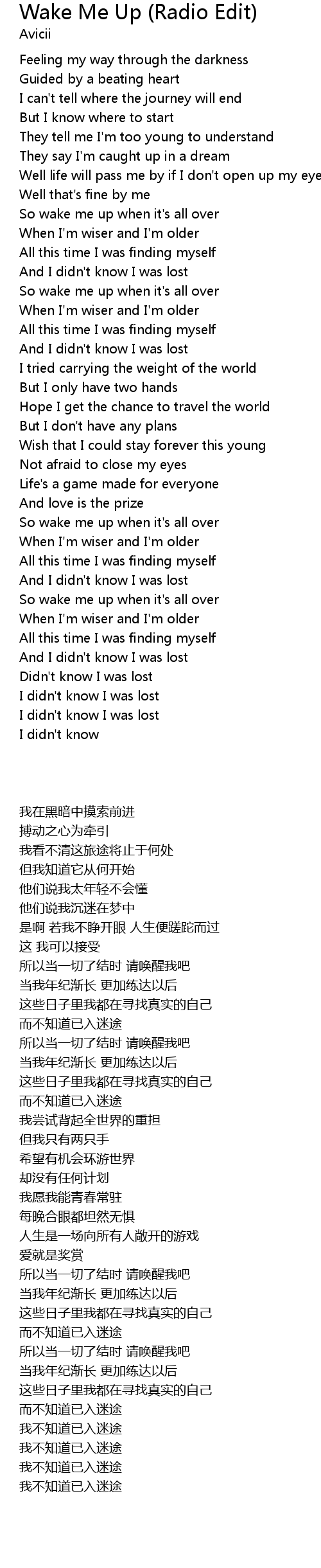 Wake Me Up (Radio Edit) Lyrics
