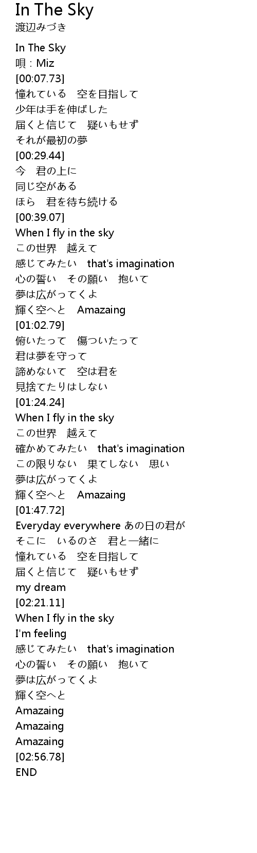 | [02:22.32] | When I fly in the sky |