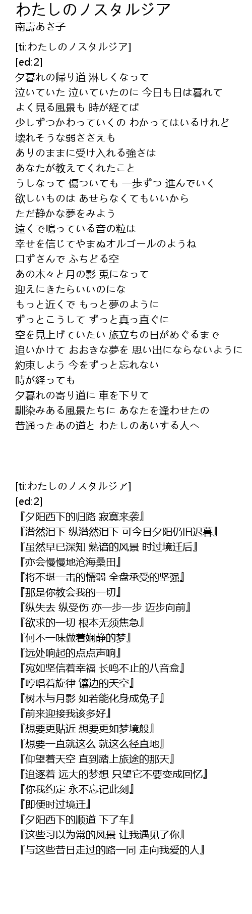 | [04:09.336] | 昔通ったあの道と わたしのあいする人へ |