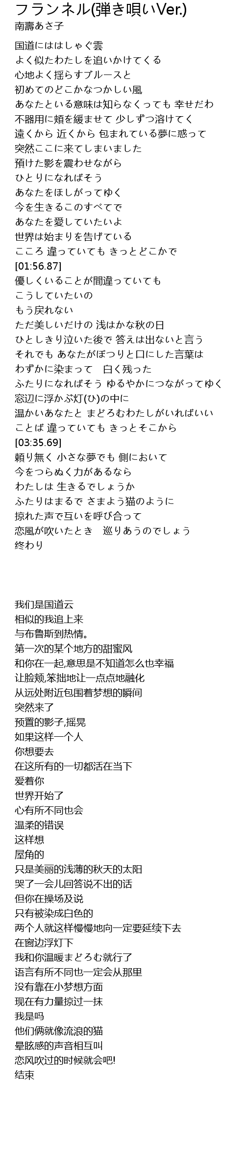 | [03:11.19] | 温かいあなたと まどろむわたしがいればいい |