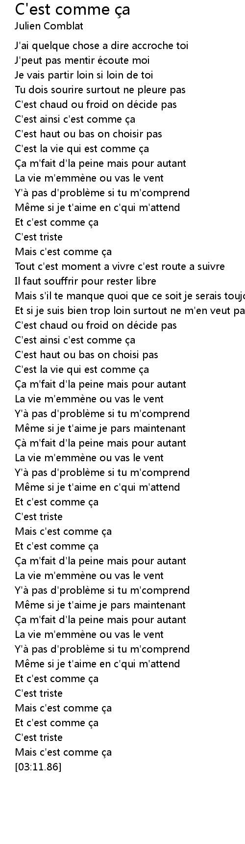 | [00:30.84] | C' est ainsi c' est comme a |