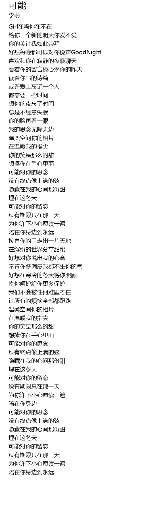 | [01:35.26] | 可能对你的留恋 |