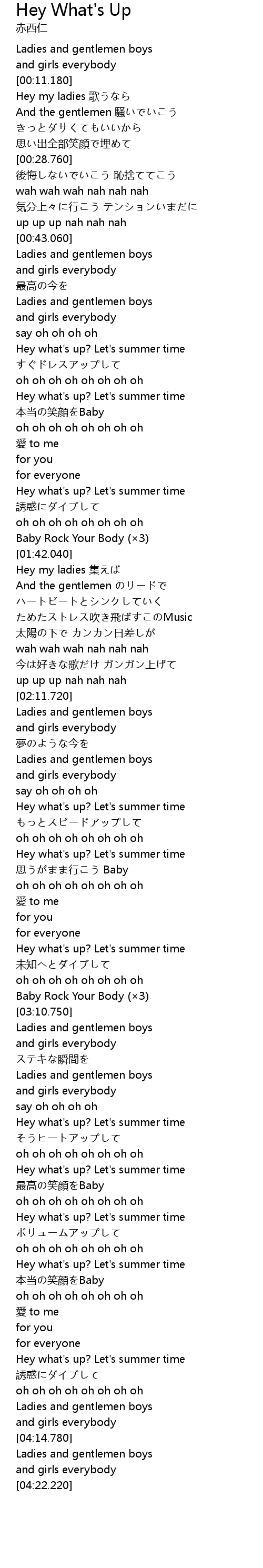 | [03:47.740] | Hey what' s up? Let' s summer time |