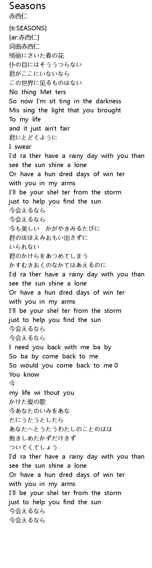 | [03:34.30] | I' d ra ther have a rainy day with you than |