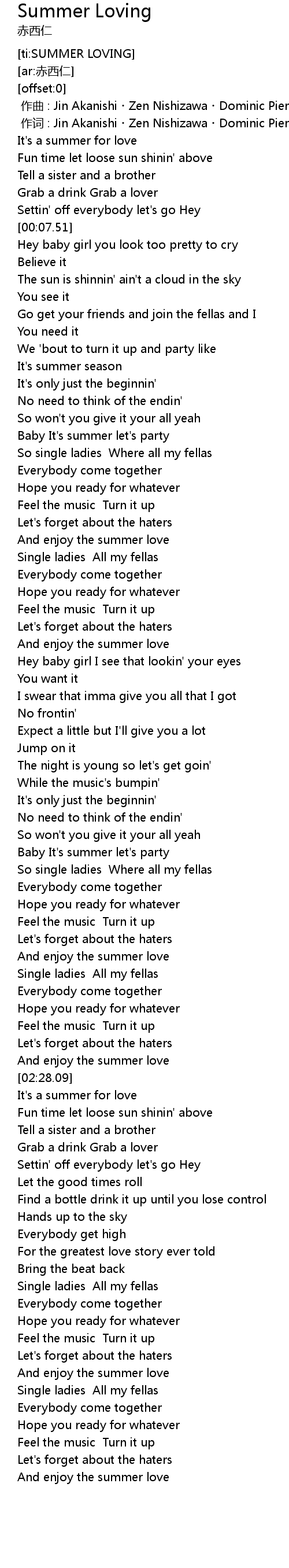 | [02:07.48] | And enjoy the summer love |