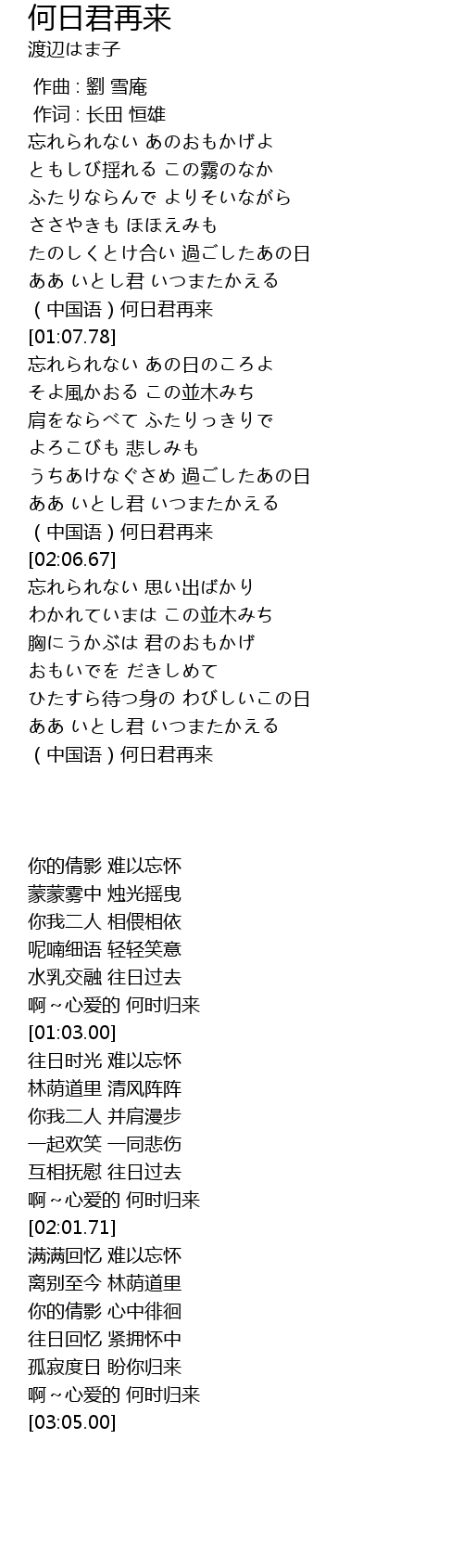 | [03:05.00] | (中国语)何日君再来 |