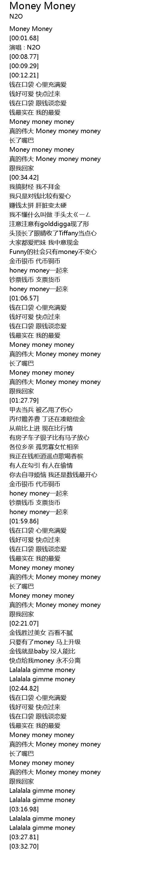 | [00:25.54] | zhēn de wěi dà Money money money |