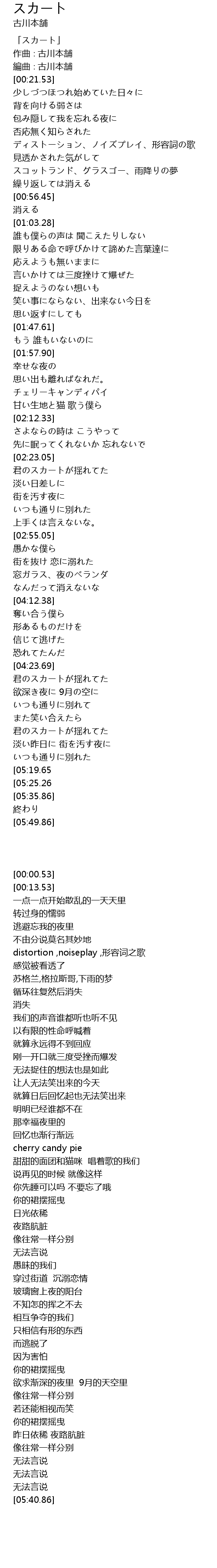 | [00:00.53] | 「スカート」 |