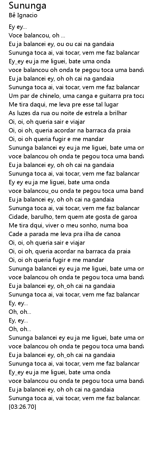 Sununga toca ai, vai tocar, vem me faz balancar. |