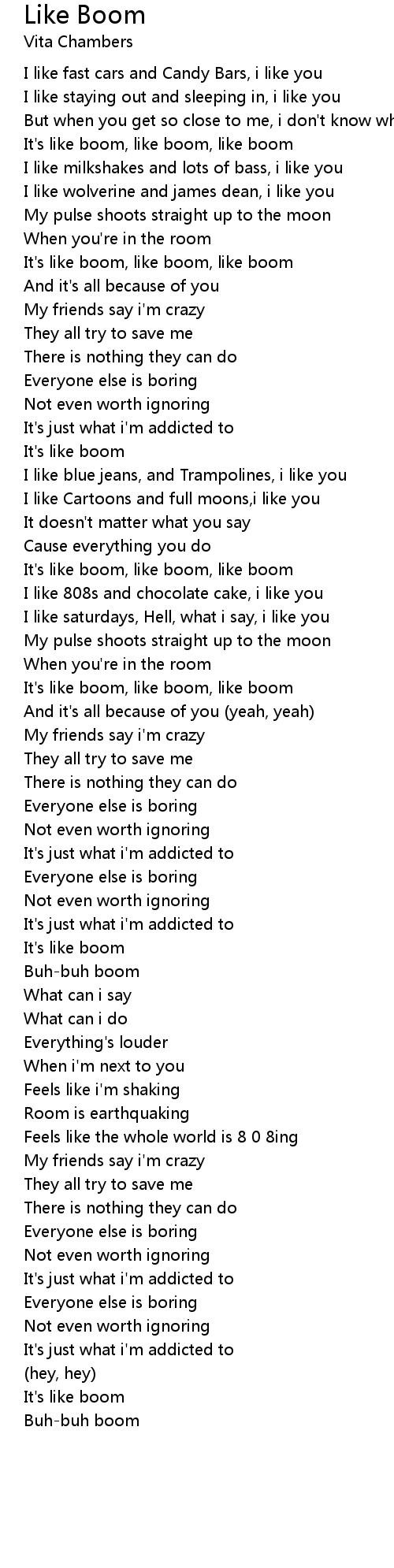 It's like boom, like boom, like boom |