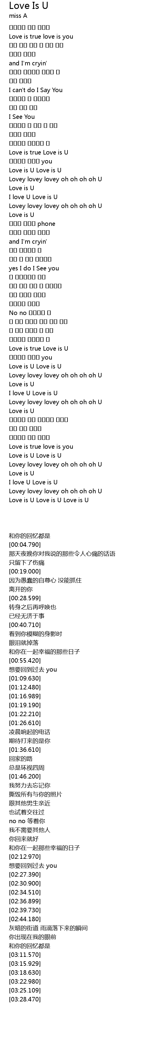 | [02:39.730] | Lovey lovey lovey oh oh oh oh U |